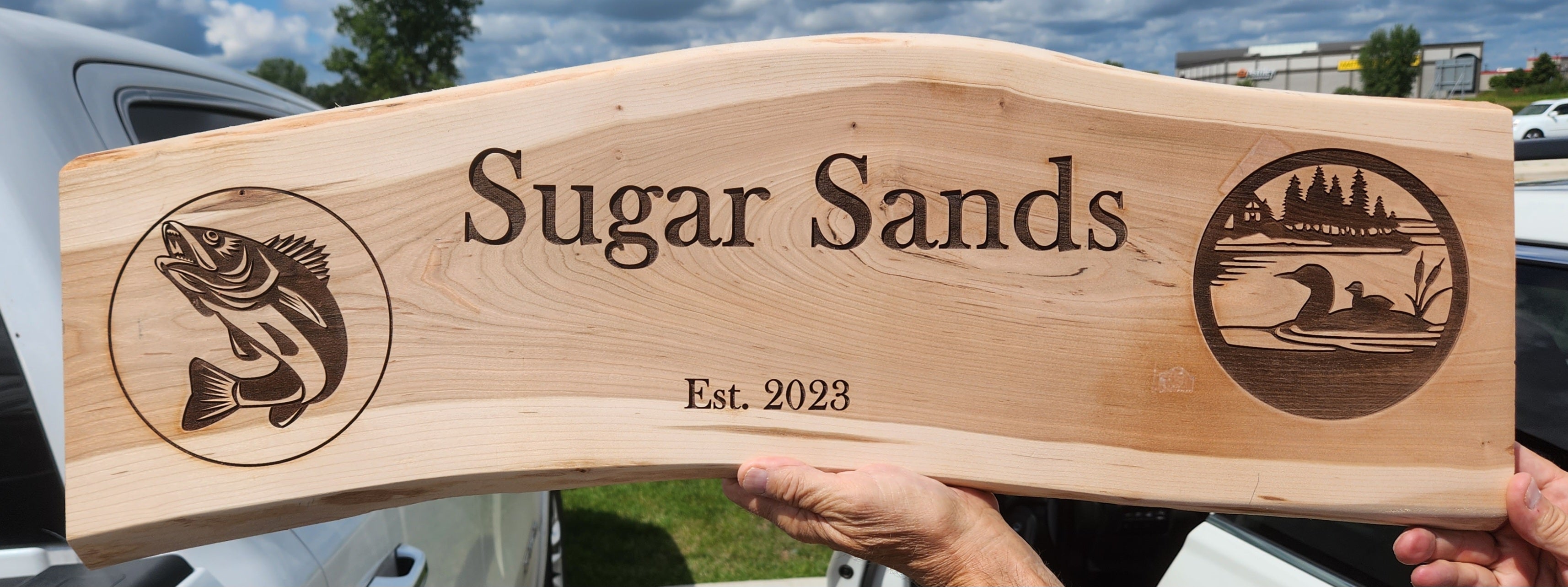 We can team up together to create a sign for your home, office, shop, or even a keepsake to remember a special event or person.  These signs are made on high quality 1/2" thick Baltic Birch plywood (the same wood used by many custom cabinet makers) with either a stock engraving that we have, or we can discuss any custom engravings you would like done.  A world of possibilities!!